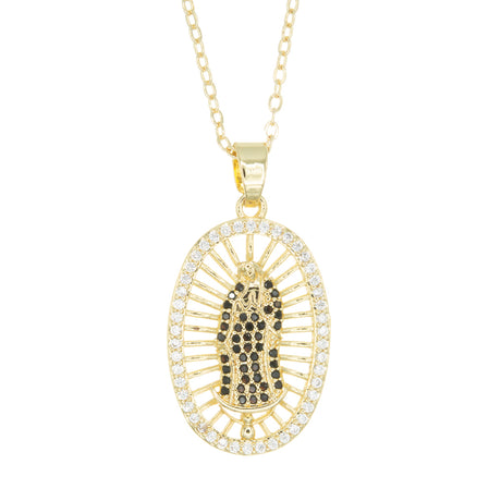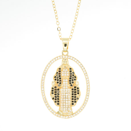 Desde: $ 142.45 c/u Hasta: $ 90.65 c/uPrecio unitario /AgotadoPoca disponibilidad (8 unidades)Gargantilla con virgen incrustada con piedra blanca y negra