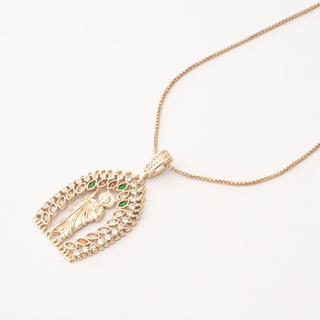 Desde: $ 173.80 c/u Hasta: $ 110.60 c/uPrecio unitario /AgotadoPoca disponibilidad (6 unidades)Gargantilla de virgen con cadena y piedra verde