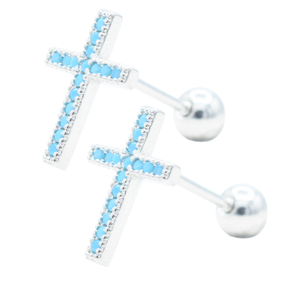 Broqueles Cruz Turquesa Rodio
