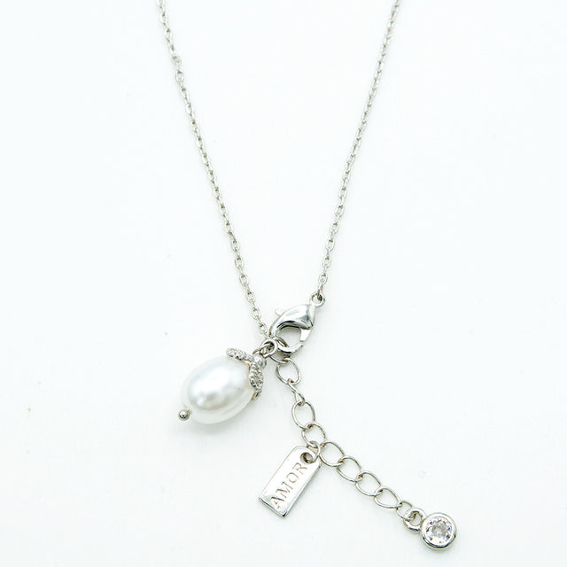 Gargantilla con dije de perla y piedra blanca